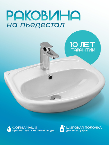 Kirovit Мебельная раковина для ванной, фарфор, Фостер 50, 50х40х15 см, белая глянцевая
