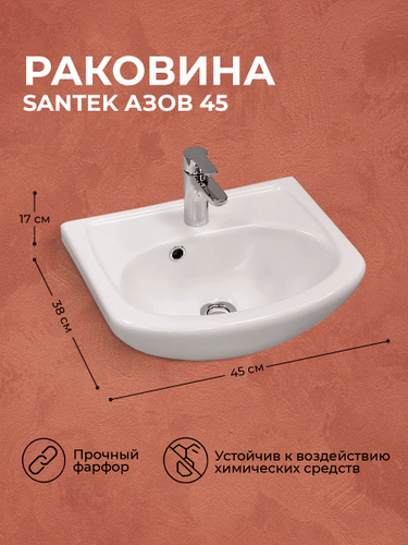Раковина подвесная в ванную 45, мебельная для тумбы Santek Адриана