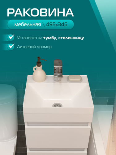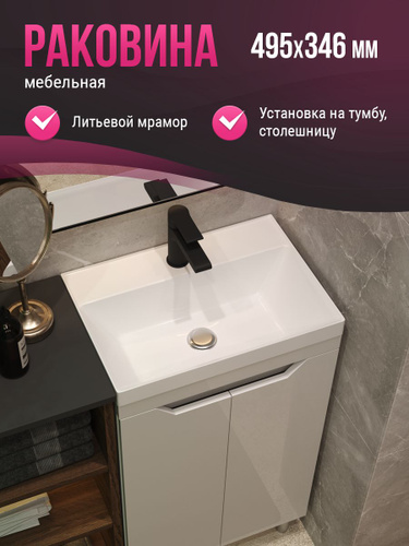 Накладная мебельная раковина Слим 50 в ванную комнату