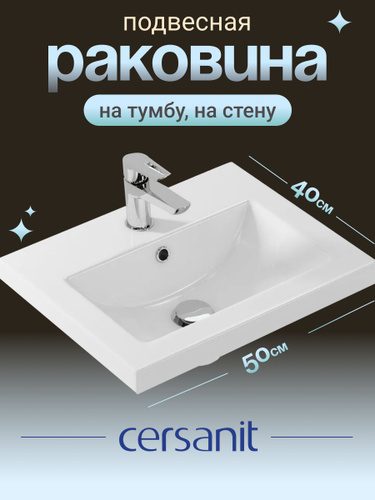 Раковина для ванной Cersanit Como 50 (S-UM-COM50/1-w), фарфор, 50х40х15.5 см, белая