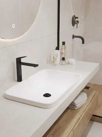 Раковина встраиваемая сверху Weltwasser WW Deilbach 10000004625 7505 62 полувстраиваемая, фаянсовая, раковина для ванной, белая, прямоугольная, со встроенным сливом-переливом