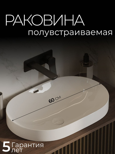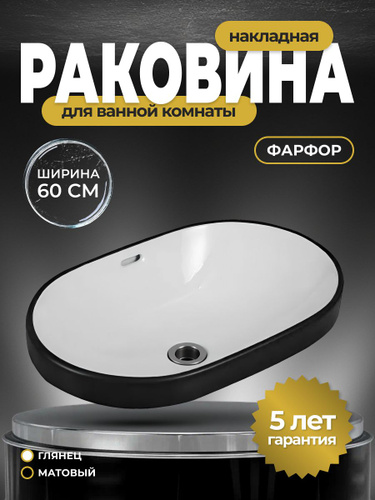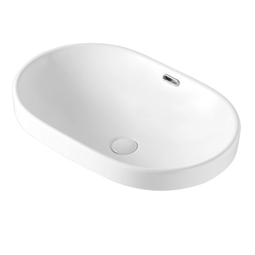Раковина встраиваемая сверху Agger ASB02600 60 полувстраиваемая, без отверстия под смеситель, фарфоровая, раковина для ванной, белая, овальная, со встроенным сливом-переливом