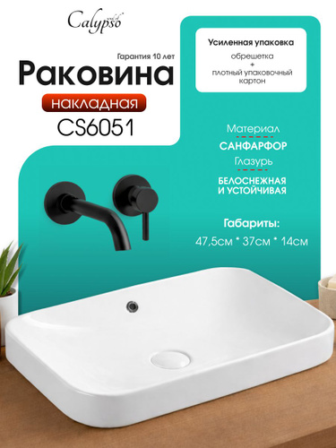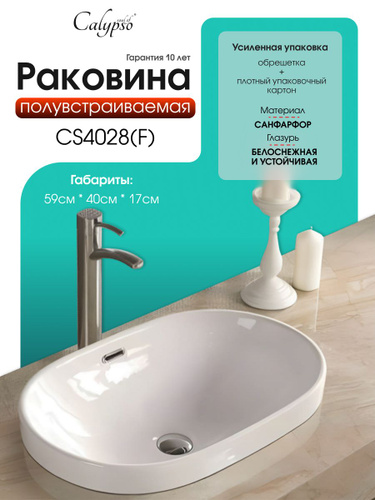Раковина полувстраиваемая для ванной Soul of Calypso CS4028 овальная белая с переливом 400х590х170 мм