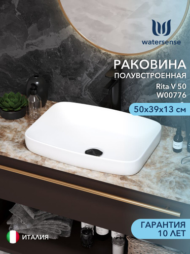 Раковина встраиваемая сверху Weltwasser WW Deilbach 10000003887 4014 48 полувстраиваемая, фаянсовая, раковина для ванной, белая, прямоугольная