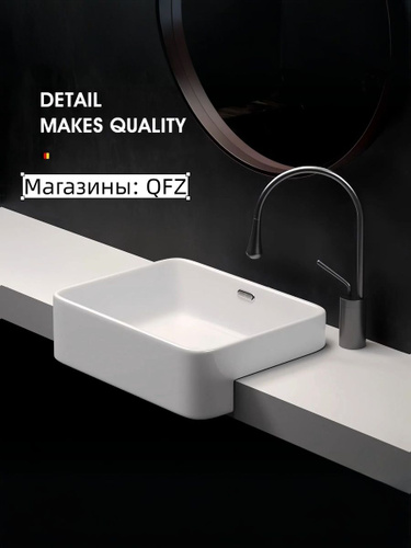 Раковина встраиваемая сверху Weltwasser WW Deilbach 10000004610 6042 44 полувстраиваемая, без отверстия под смеситель, фаянсовая, раковина для ванной, белая, квадратная