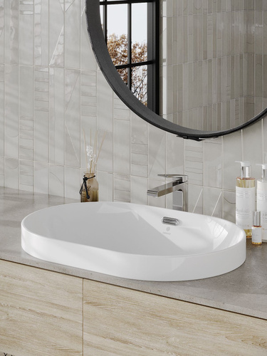 Раковина Oliveeka 6002 полувстраиваемая на столешницу для ванной, белая