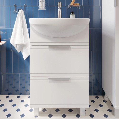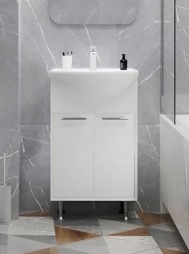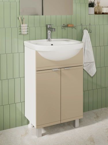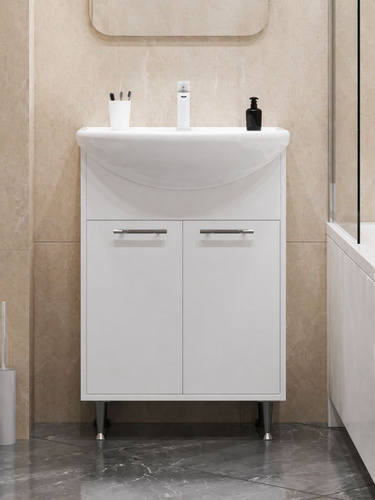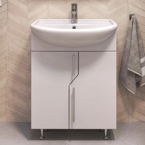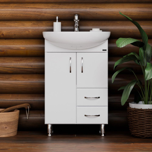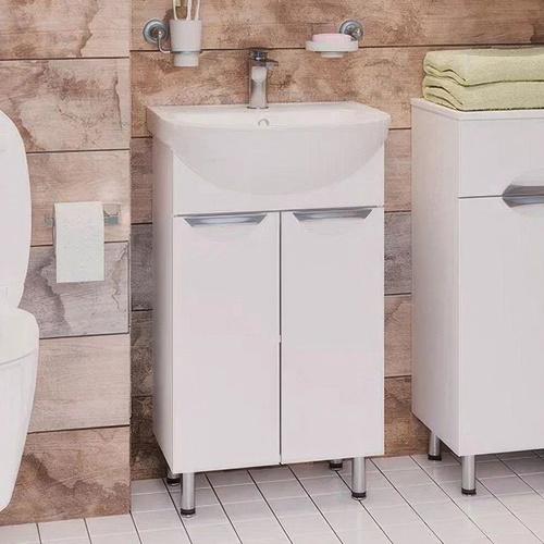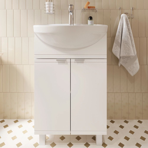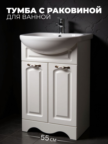 Тумба с раковиной для ванной Империя 55 напольная, белая (раковина Уют 55)