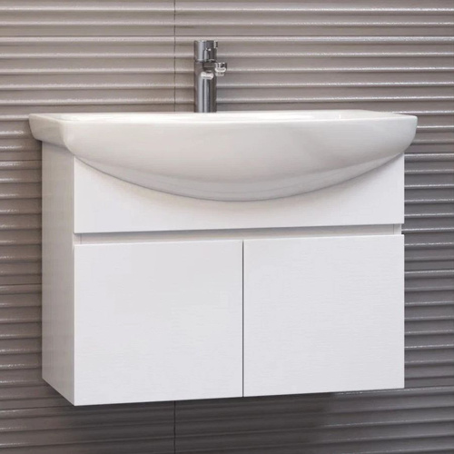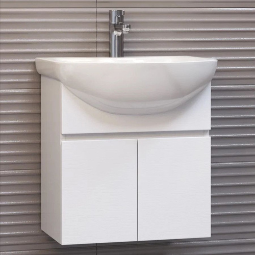 Тумба с раковиной Vigo Wing 60 подвесная, 61 см, белая, матовая, из ЛДСП, с дверками, раковина для ванной фарфоровая, полукруглая, встроенный слив-перелив