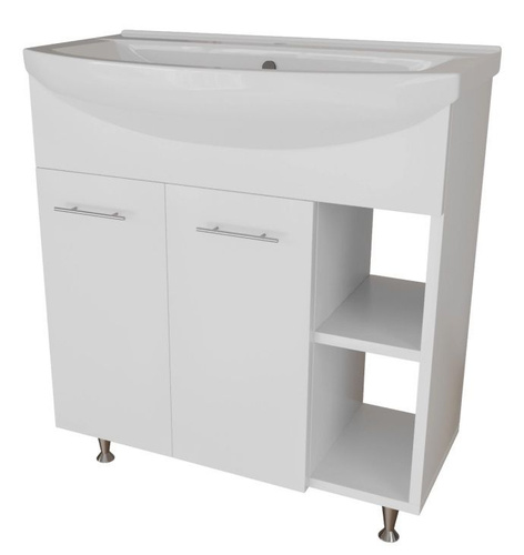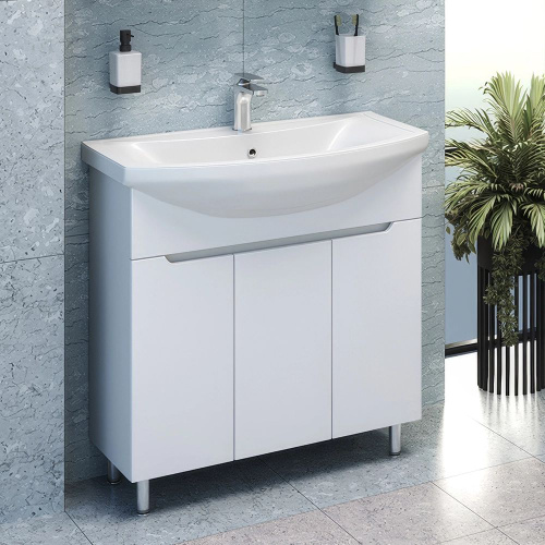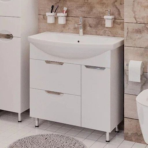 Тумба с раковиной Emmy Милли 80 напольная, 81, 3 см, белая, глянцевая, из МДФ, с ящиками, с дверками, раковина для ванной фарфоровая, полукруглая