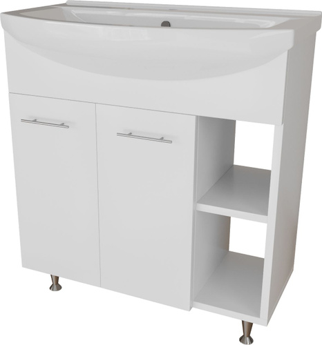 Тумба с раковиной Emmy Агата 80 напольная, 81, 3 см, белая, глянцевая, из МДФ, с дверками, раковина для ванной, фарфоровая, полукруглая