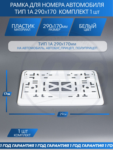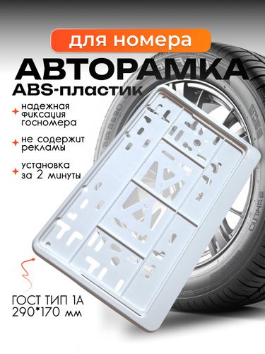 Рамка для номера автомобиля квадратная ГОСТ ТИП 1А (290*170 мм) белая 1 шт