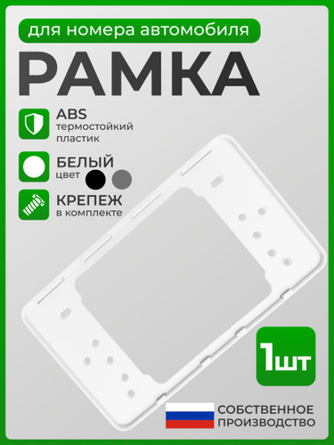 Рамка для номера автомобиля квадратная БЕЛАЯ (крепежные винты в комплекте), пластик, для госномера 290*170 мм ГОСТ ТИП 1А, 1шт.