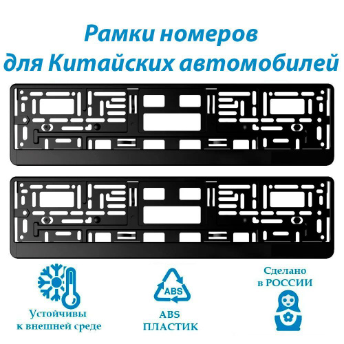 Рамка для номера автомобиля, госномера, универсальная, пластик, черная 2 шт