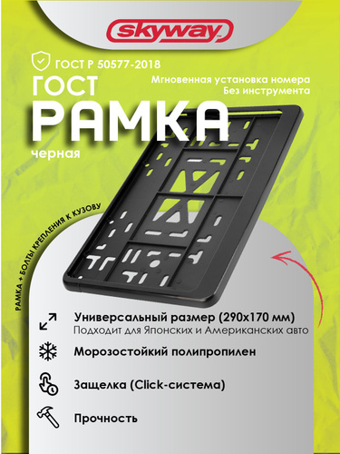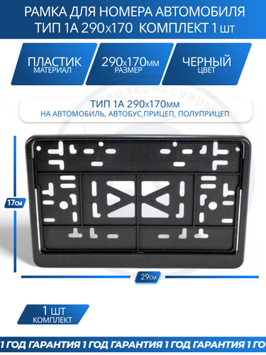 Рамка для номера квадратная, 290х170, черная, 1 шт.
