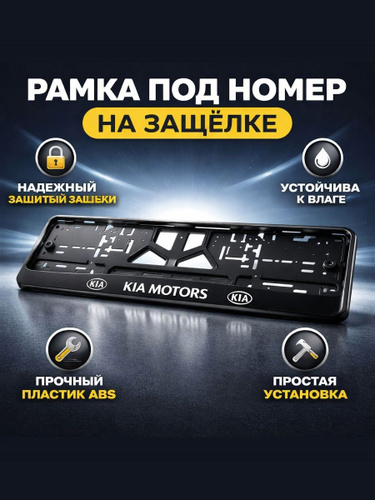 Рамка для номера автомобиля, госномера, универсальная, на защёлке, пластик, "KIA" черная 1 шт