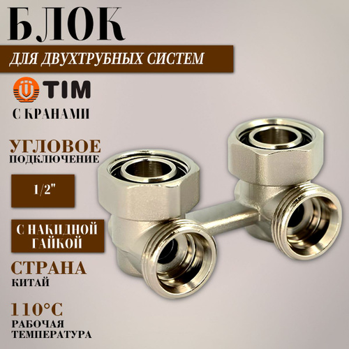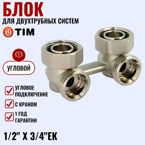 Блок для двухтрубных систем угловой с кранами TIM 1/2" х 3/4"EK