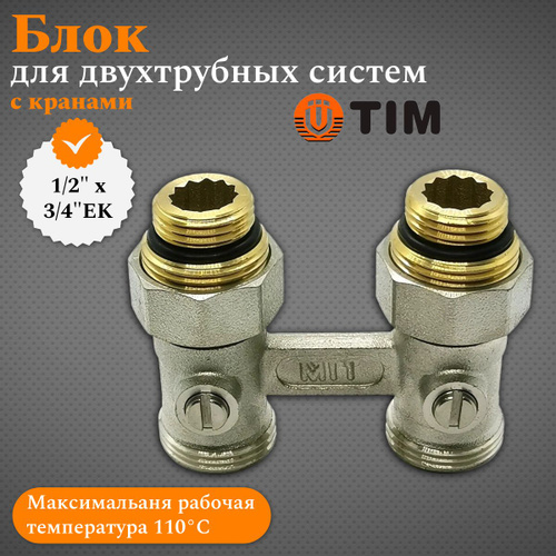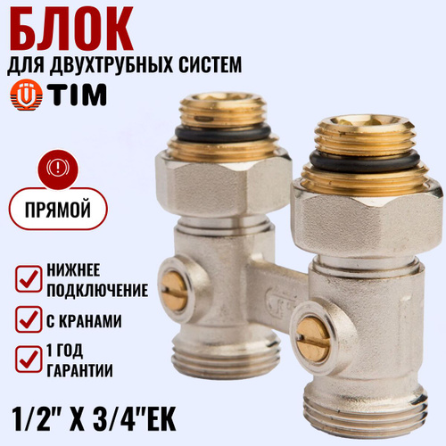 Блок для двухтрубных систем прямой с кранами TIM 1/2" х 3/4"EK