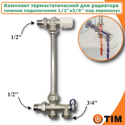 Комплект термостатический для радиатора 1/2'' ME870E+ME860E нижнее подключение 3/4'' TIM