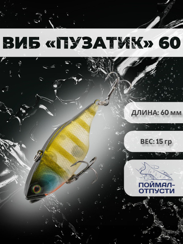 Виб, ратлин Пузатик 60 (6см, 15гр) Поймал-Отпусти. Для зимней и летней рыбалки. На щуку, судака, окуня и другую хищную рыбу.