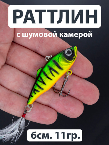 Воблер Раттлин 6,1см. 11,2гр. с шумовой камерой, гремящий, rattlin, зимняя и летняя рыбалка, приманка для рыбалки на спиннинг и для подлёдной ловли зимой.