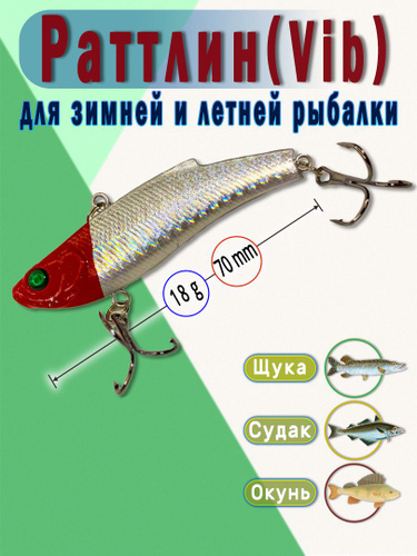 Раттлин (виб) . VIB Rattlin, зимняя и летняя рыбалка, снасть для спининга, приманка для рыбалки, воблер на щуку судака окуня, ратлин 7см. 16гр