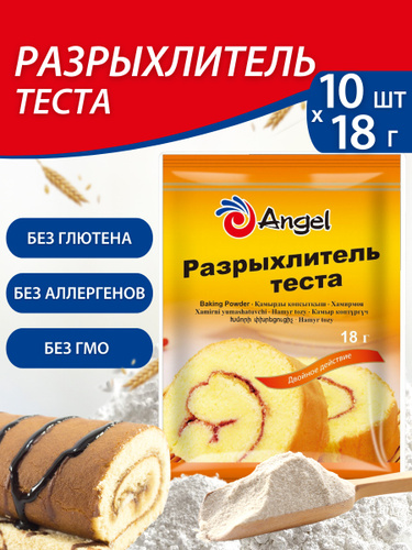 Разрыхлитель теста Ангел ("Angel") двойного действия, 10 шт по 18 г, без глютена, алюминия и др. аллергенов