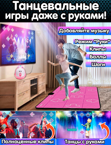 Танцевальный коврик двойной с камерой беспроводной 64 бит русский язык
