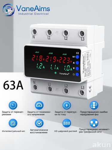 Реле напряжения 63А трехфазное