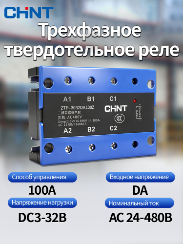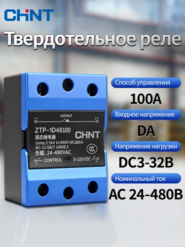 CHINT ZTP-1DA Твердотельное реле постоянный-переменный ток DA контроль DA однофазное SSR ,Номинальный ток 100A, Входное напряжение 3-32B DC ,Напряжение нагрузки 24-480B AC