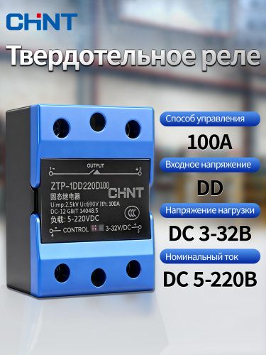CHINT ZTP-1DD Твердотельное реле постоянный-постоянный ток DD контроль DD однофазное SSR ,Номинальный ток 100A, Входное напряжение 3-32B DC ,Напряжение нагрузки 5-220B DC
