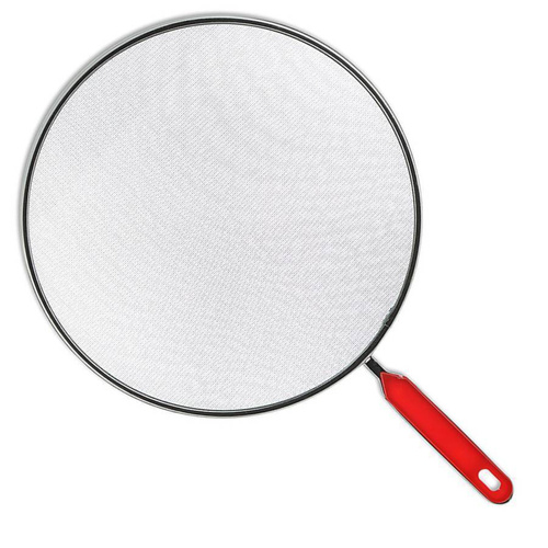 Крышка-сетка для сковороды 29 см от брызг масла с ручкой, металлическая