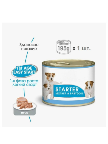 Влажный корм Starter Mother&Babydog (мусс) для щенков и беременных, кормящих собак, 195 г х 1 шт.