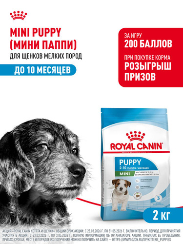 Сухой корм, Royal Canin Mini Puppy для щенков мелких пород (вес взрослой собаки от 1 до 10 кг) в возрасте до 10 месяцев, 2 кг