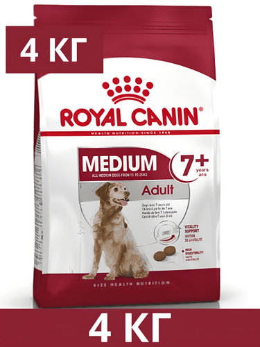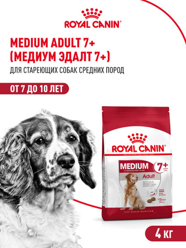 Сухой корм, Royal Canin Medium Adult 7+ для стареющих собак средних размеров (весом от 11 до 25 кг) в возрасте от 7 до 10 лет, 4 кг