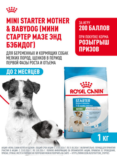 Сухой корм для щенков Royal Canin Mini Starter для беременных и кормящих собак мелких пород, 1 кг