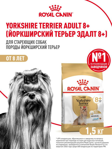 Сухой корм для собак пожилых Royal Canin 8+ для породы йоркширский терьер, 1,5 кг