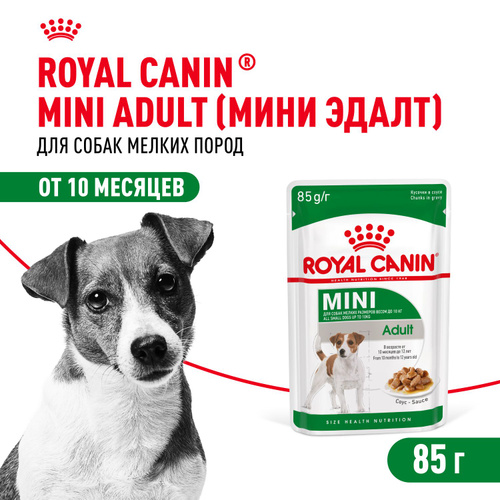 Пауч влажный корм для взрослых собак мелких размеров от 10 месяцев кусочки в соусе, Royal Canin MINI ADULT, 85 г