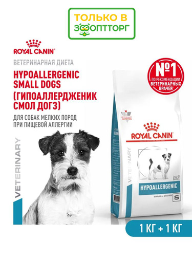 Сухой корм Royal Canin Hypoallergenic Small Dog для собак мелких пород при пищевой аллергии, 1 кг х 2 шт.