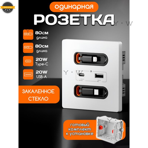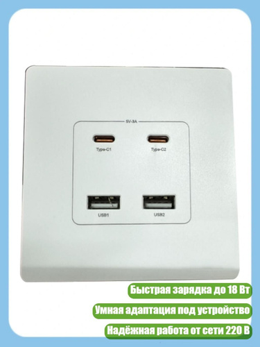 USB Розетка с TypeC и Защитой от Вмешательства 18W 220V для Дома, - Скрытые два