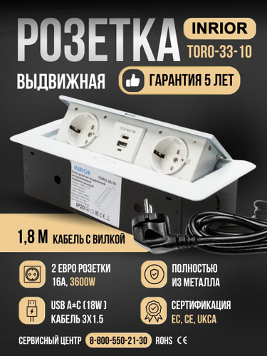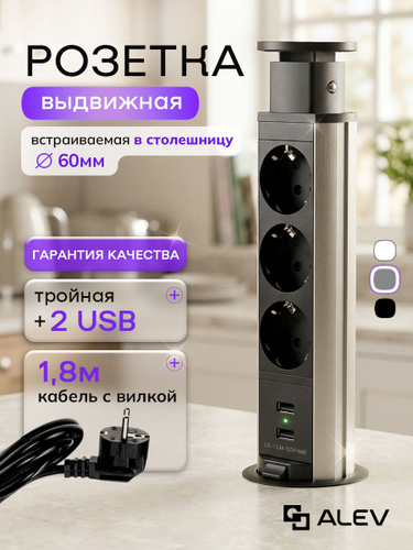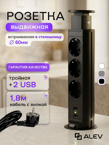 Розетка встраиваемая выдвижная тройная с USB в столешницу