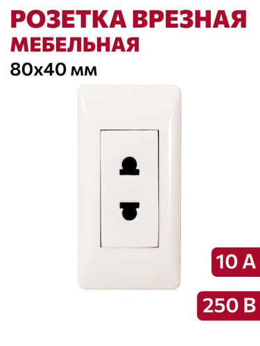 Розетка врезная мебельная, 250В, 10А, 80х40мм, белая