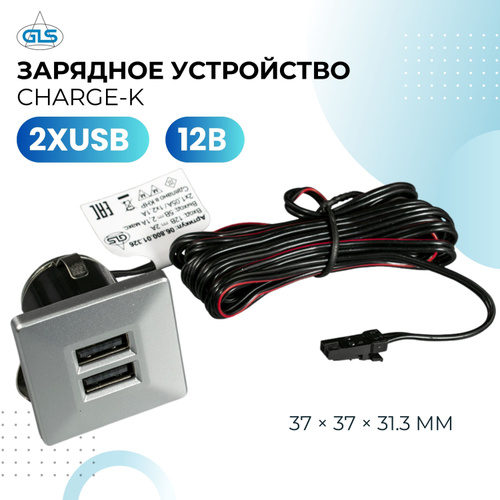 Зарядное устройство для телефона, врезное, розетка с разъёмами USB, GLS, CHARGE-K 2XUSB/ 3,4А, для столешницы, стола
