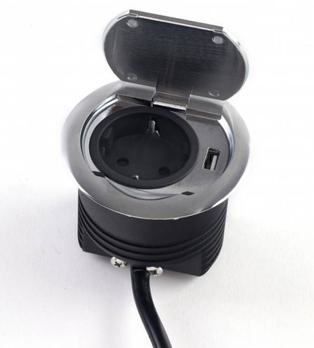 Встраиваемая выдвижная розетка для столешницы, скрытый удлинитель для кухни на 3 розетки с заземлением серебристый провод Pop-up USB 2