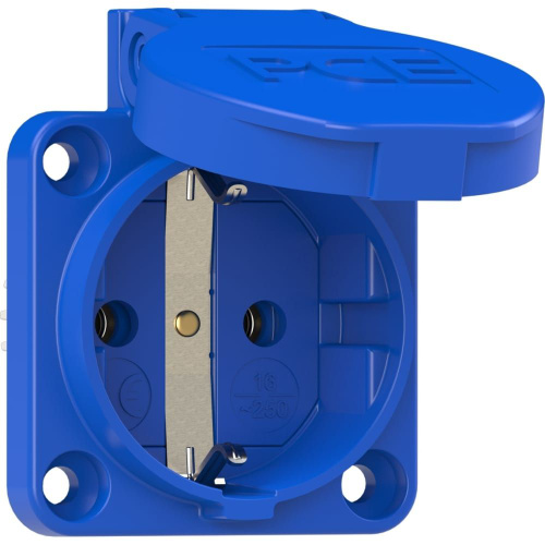 Встраиваемая розетка PCE 16А 220V 2P+E IP54 50x50 подключение сзади, синяя 105-0b