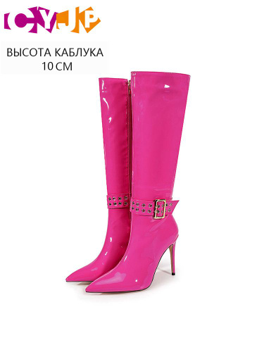 Розовые лаковые ботфорты