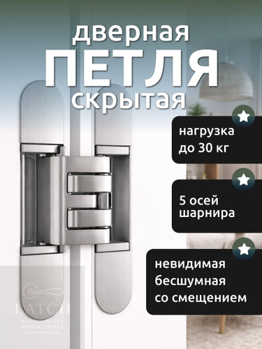 Петля скрытая универсальная CH-02 SN (сатин) 3D-регулировка, до 30 кг, реверсивная, для дверей 38 мм