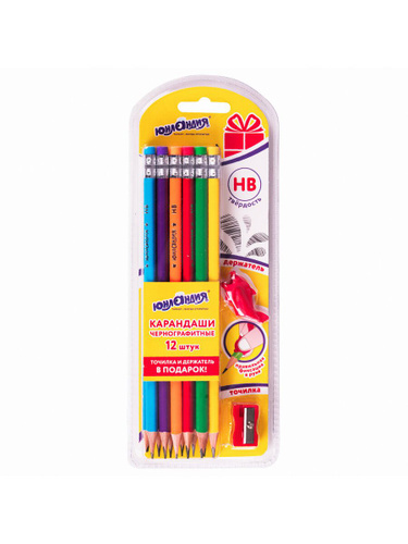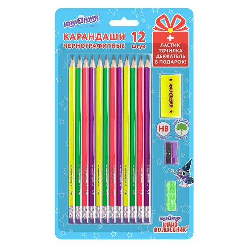 Набор простых карандашей с ластиком / стеркой / резинкой Юнландия Юный волшебник, 12 карандашей чернографитных + точилка + ластик + держатель
