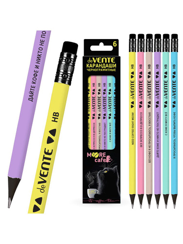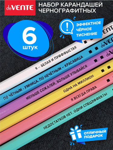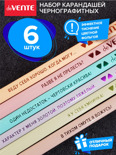 Набор простых чернографитный карандашей для рисования с фразами на корпусе 6 шт