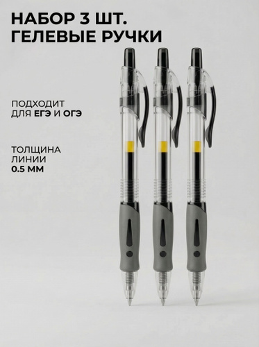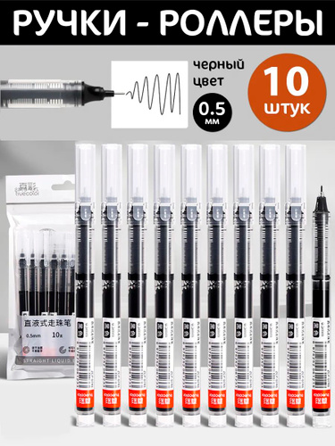 Набор ручек Роллер, Гелевая, толщина линии: 0.5 мм, цвет: Черный, 10 шт.