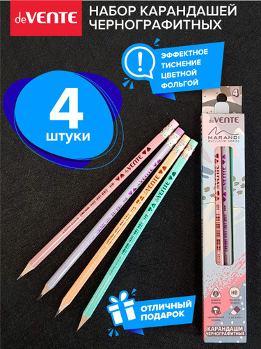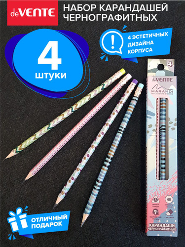 Набор простых карандашей чернографитных для рисования с ластиком 4 шт